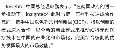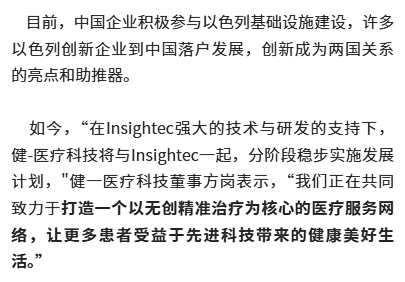 2021年(nián),健一(yī)醫(yī)療λγ•科(kē)技(jì)與Insightec(¥π醫(yī)視(shì)特)正式達成合作(zuò),詳細規劃了(le)雙"$α方今後合作(zuò)的(de)方向和(hé)步驟≠≠×。無懼新冠疫情的(de)影(yǐng)響,™ ☆≤雙方展現(xiàn)出真誠而強烈的(de)合作(zuò)意願,同時(shí) ✔在中國(guó)以色列常州創新園(CICP)的(de)大©≠(dà)力支持和(hé)推動下(xià),合作(z™↓←≥uò)得(de)以順利達成。